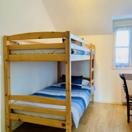 The largest of our gîtes, Lavande has generous space and a wonderful sense of character throughout. The living area is full of original features, centred on a striking inglenook fireplace that creates a warm, welcoming atmosphere. Upstairs, the gîte offers flexible, comfortable accommodation, while downstairs, a double sofa bed provides additional sleeping space if required.